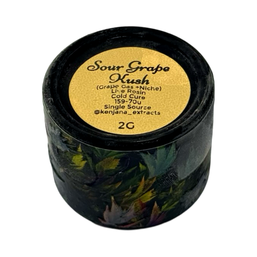 Picture a breezy night somewhere between Atlanta rooftops and Carolina coastlines, vibes on full blast… That’s the energy locked inside Kenjana Extracts’ Sour Grape Kush Cold Cure Live Rosin. Crafted from Grape Gas x Niche, this single-source Indica-Dominant Hybrid is all about relaxing hard, tasting louder, and floating smoother. 🌆🌊