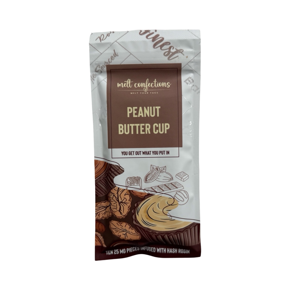Experience the ultimate in edible luxury with Peanut Butter Cup by Melt Confections — smooth chocolate, creamy peanut butter, and a serious hash rosin kick wrapped into a perfect little package. 🎁